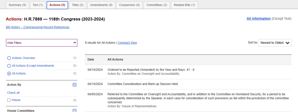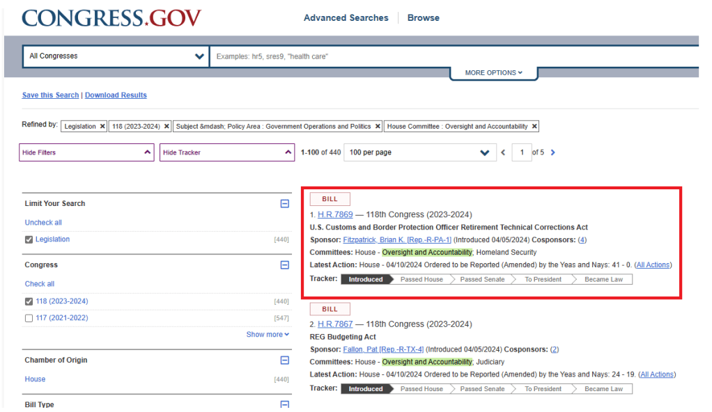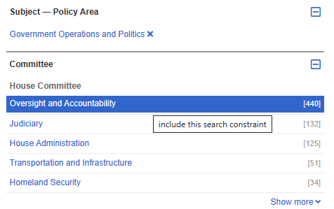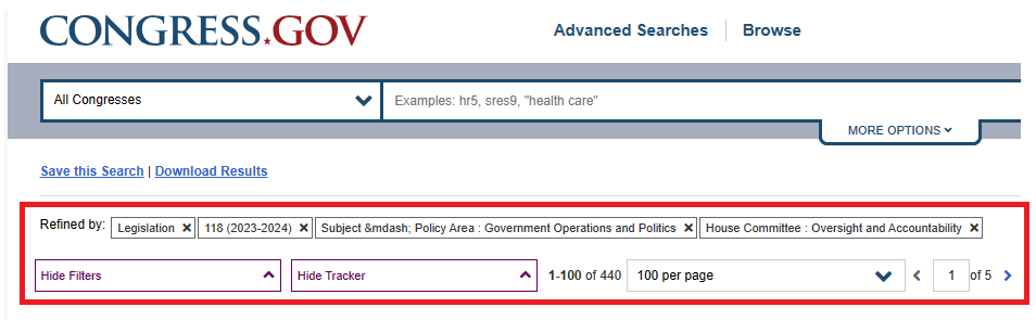 NOTE: For the above-filtered information, this link: CONGRESS.GOV for 118th GOVERNMENT OPERATIONS AND POLITICS / HOUSE COMMITTEE: OVERSIGHT AND ACCOUNTABILITY will take you to the page that is pictured above.