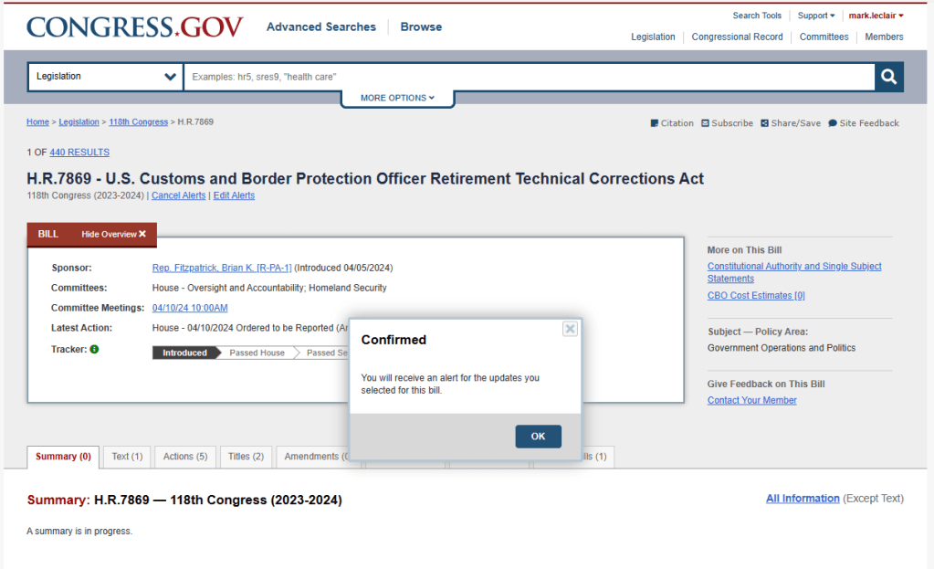 I hope this helps. It’s what I have been doing for years, to track specific committees (veteran Affairs) and is how I am able to write factual information that is quickly source-able.