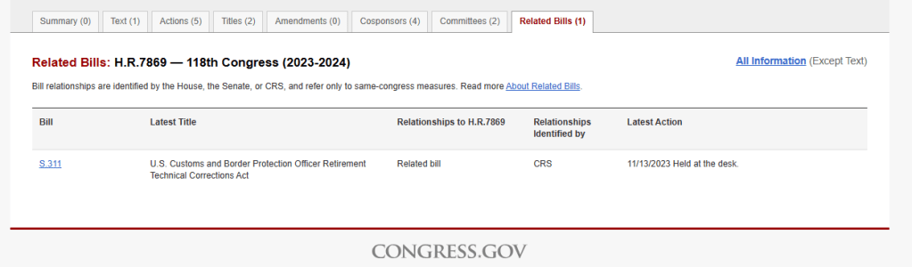 Let’s say Custom Agents REALLY need new uniforms AND this politician REALLY needs to appear pro-law enforcement/custom-agents/border patrol, then they get someone in the Senate to propose the same bill. Now, if the House Bill has issues, a backup bill (S 2222) is already passing the Senate and headed to the House.